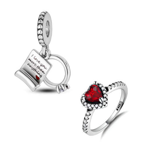 Design: Charm mit graviertem Liebesbrief & Ring mit rotem Herz-Kristall