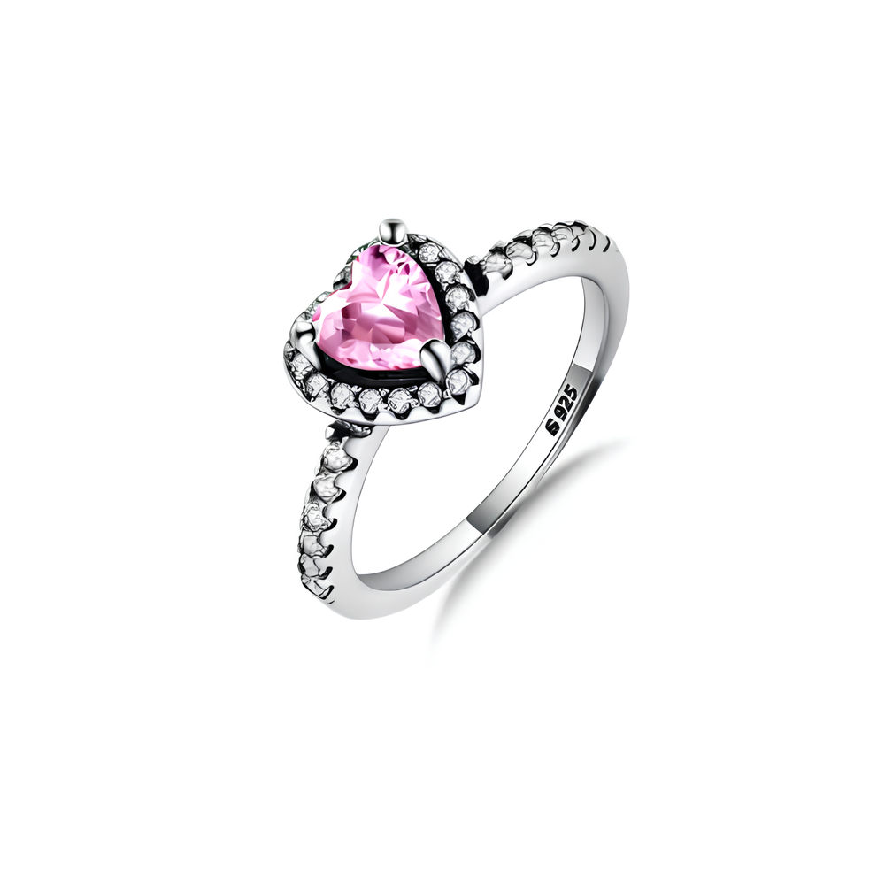 Ein leuchtender rosa Herz-Kristall, eingefasst von einem funkelnden Zirkonia-Kranz – dieser Ring vereint Romantik mit Glamour. Der elegante Silberring bringt dein Herz zum Strahlen und ist ein zeitloses Symbol echter Gefühle.