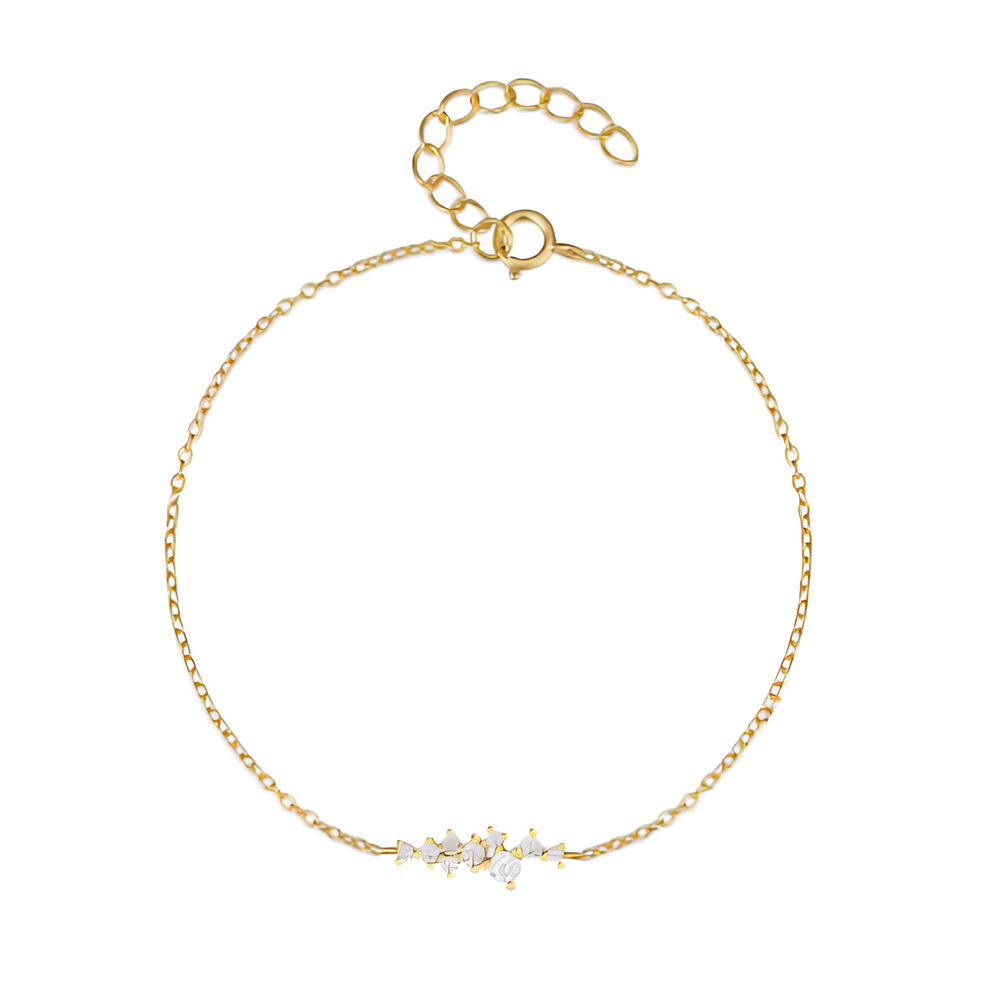 Wie eine zarte Blüte aus funkelnden Steinen schmiegt sich dieses filigrane Armband um dein Handgelenk – dezent, aber voller Leuchtkraft. Ein Hauch von Luxus trifft auf romantisches Design, ideal für elegante Alltagslooks oder besondere Anlässe.