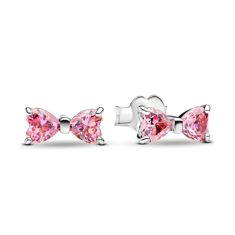 Zwei herzförmige rosa Kristalle formen eine zarte Schleife, die Leichtigkeit und Romantik versprüht. Diese dezenten Ohrstecker bringen sanften Glanz in deinen Alltag – süß, verspielt und doch stilvoll.
