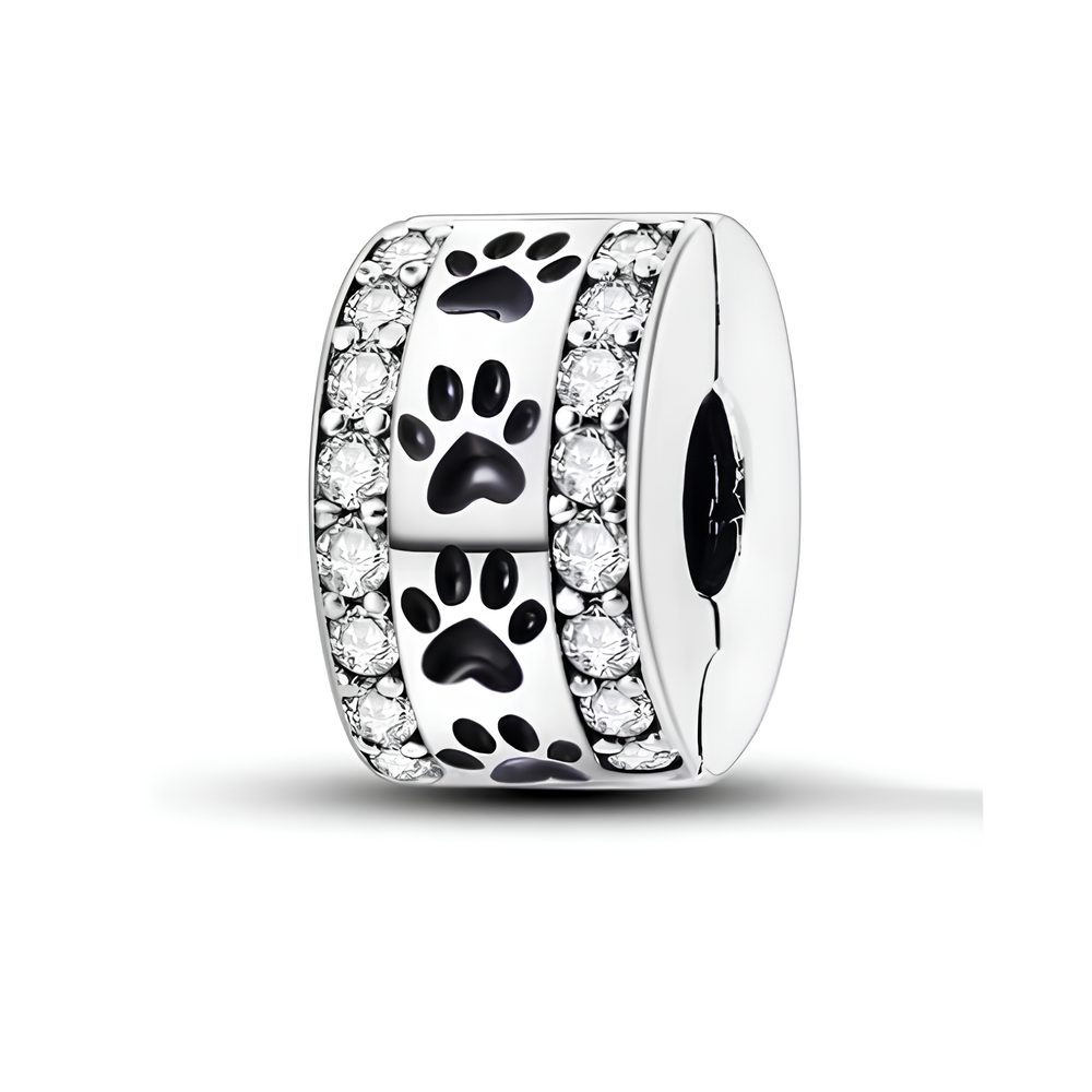 Design: Glänzender Clip mit schwarzen Pfotenabdrücken und Zirkonia-Fassung