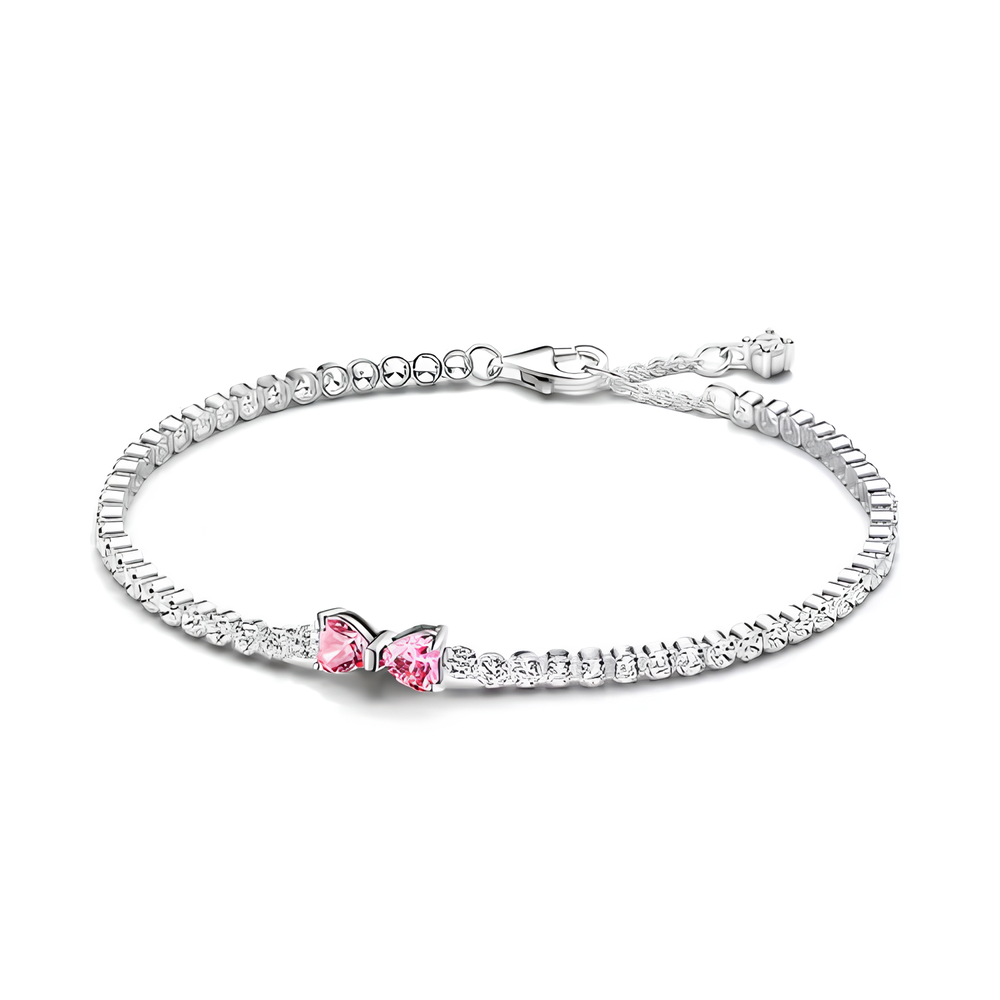 Dieses feine Armband verzaubert mit zwei herzförmigen Kristallen, die sich zu einem zarten Schmetterling formen – ein Symbol für Freiheit, Neuanfang und Schönheit im Wandel.