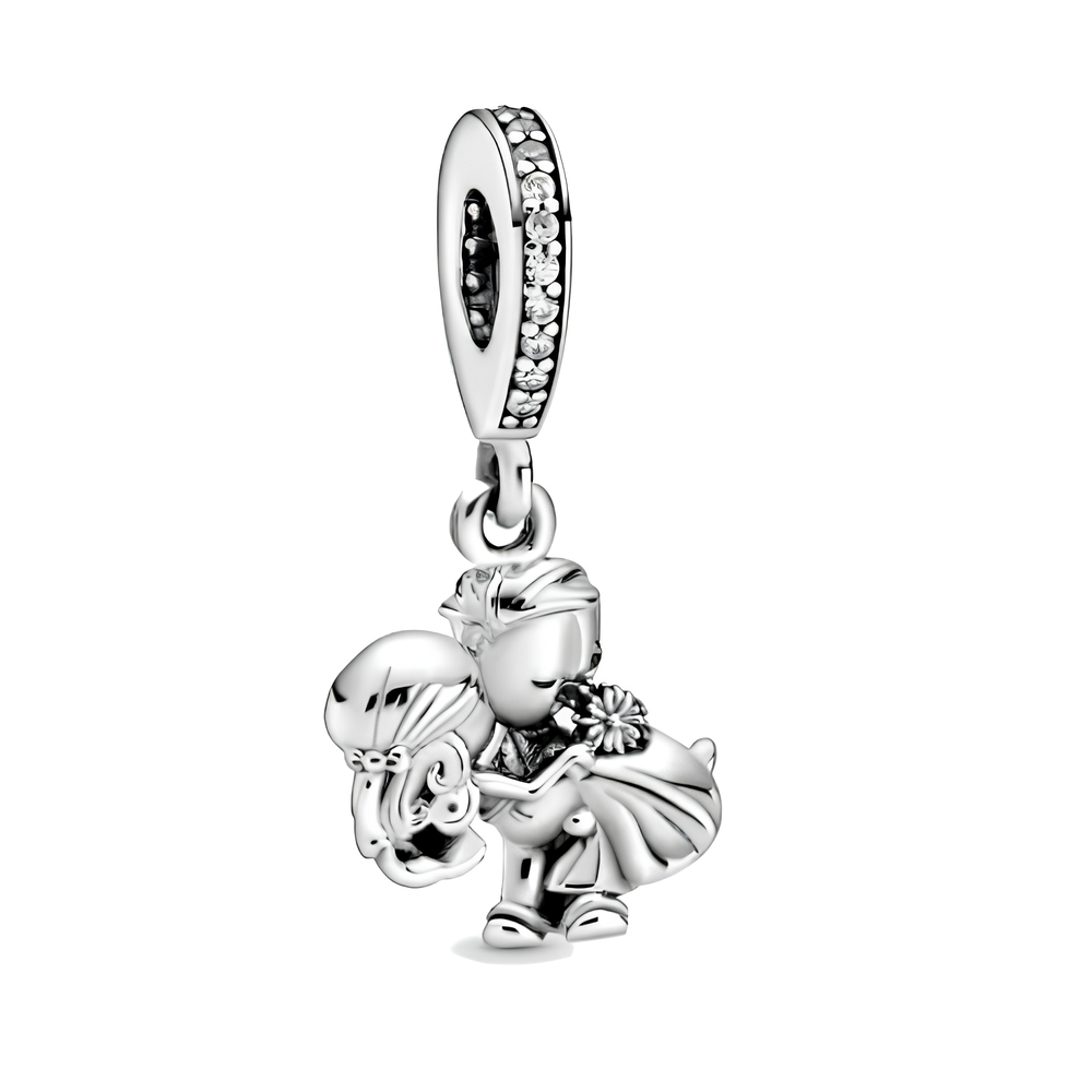 Ein liebevoller Kuss, eingefroren in Silber – dieser Charm zeigt ein Brautpaar in inniger Umarmung und erinnert an den schönsten Moment zweier Herzen. Perfekt als Geschenk zur Hochzeit, zum Jahrestag oder einfach als Zeichen unvergänglicher Liebe.